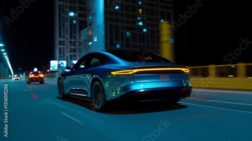 Sleek Electric Car AI Night City Drive Autonomous Vehicle Smart Transportation