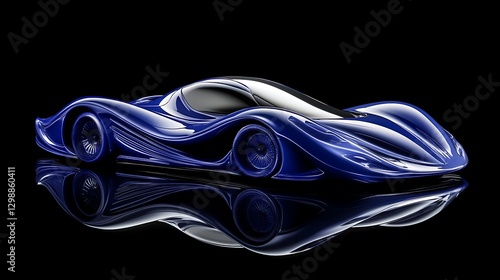 Sleek Futuristic Car Design in Metallic Blue Isolated on Black Reflective Background Rendering