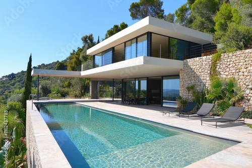 modern, house, luxury home, luxury, exterior, swimming pool, home, villa, construction, real estate, outdoors, lifestyle, furniture, sparse, idylli, design, residential, sofa, decor, style, outside, private, opulence, architecture, minimalist, terrace, pool, property, concrete, architectonic, rich, recreation, designer, relaxing, concept, indoor, vacation, patio, wealth, nobody, wealthy, holiday, deck, building, contemporary, chair, garden