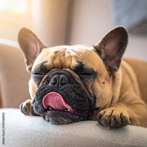 Sleeping French Bulldog on a Cushion