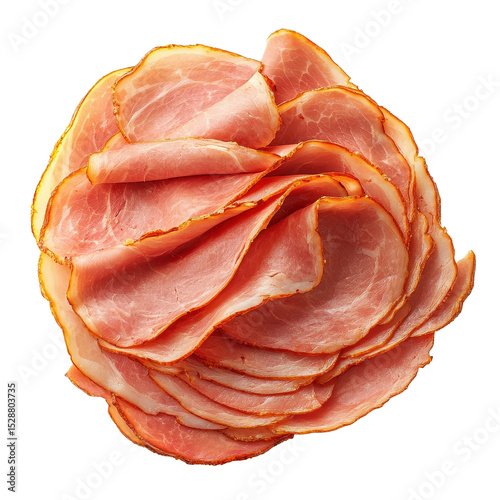 Sliced ham presented in an elegant arrangement on a Transparent background for culinary purposes, Sliced ham isolated on PNG background