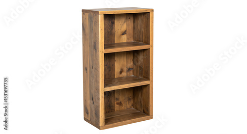 Small bookshelf made of reclaimed wood with visible grain and rustic finish, isolated on white — eco-friendly Brazilian furniture piece