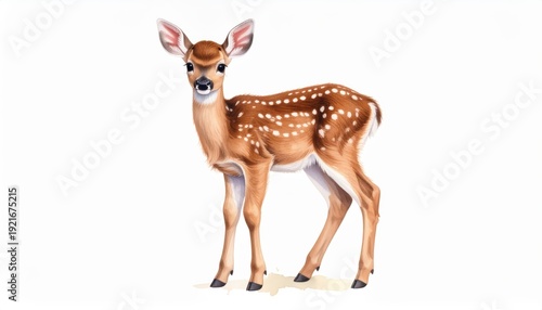 Small deer standing on white surface clean studio shot graceful young deer poses calmly on pure white background