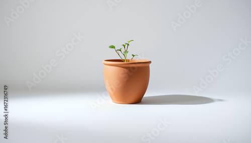 plant, pot, terracotta, germinating, growth, minimal, home decor, indoor plant, nature, spring, germ bud, green, small, clay, ceramic, brown, simple, design, decoration, interior, still life, photo, white background, isolated, organic, natural, life, new life, fresh, eco, sustainability, botanical