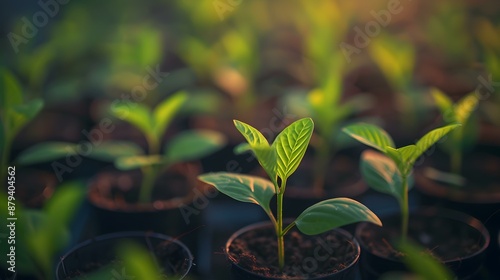 Small tree seedlings growing in pots are neatly