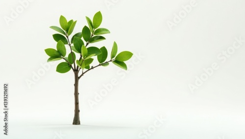 Small tree, slender trunk, new leaves on white background , pure, forest, vibrant