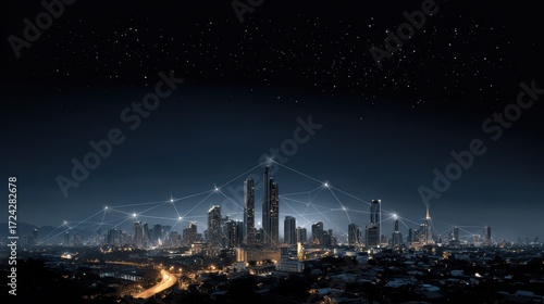 connectivity, metropolis, networking, skyscraper, future, global, light, tech, innovation, city skyline, finance, datum, illuminated, cyberspace, wireless, communication, night, futuristic, artificial intelligence, business, technology, infrastructure, dark, blue, urban, ai, city landscape, building, architecture, city landscape