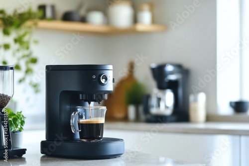 smart, hot drink, maker, modern, kitchen, natural, light, copy, space, appliance, technology, espresso, cappuccino, automated, brewing, machine, breakfast, morning, beverage, kitchen utensile, interior, design, contemporary, sleek, minimalist, product, shot, clean, white, counter, chrome, steel, glasses, shadow, bright, lifestyle, home, indoor, electric, digital, wi-fi, remote, control, innovation, future, contraption, device, functional