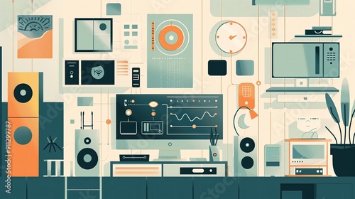 technology, home automation, innovation, graphic design, futuristic, icon, music, vector, audio, illustration, computer, set, camera, sound, speaker, equipment, digital, web, player, design, icon, photo, symbol, media, television, video, radio, mp3, buttons
