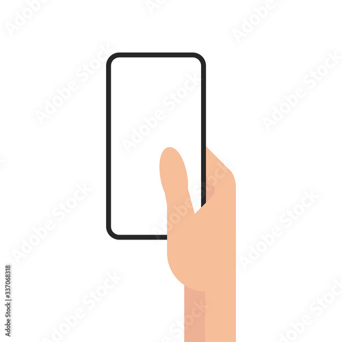 Smartphone with a blank white screen. in hand on white background. Flat Style