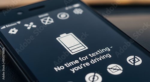 Smartphone with warning “Not time for texting – you're driving” as driving safety reminder