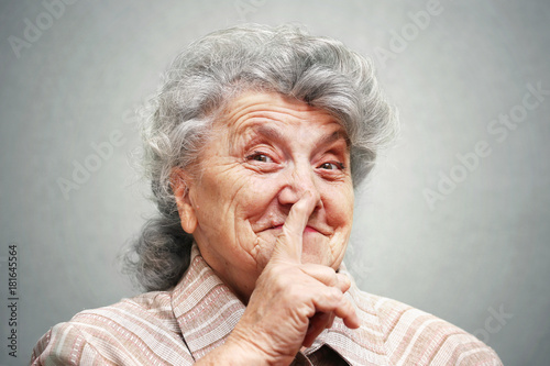 Smile elderly woman with finger
