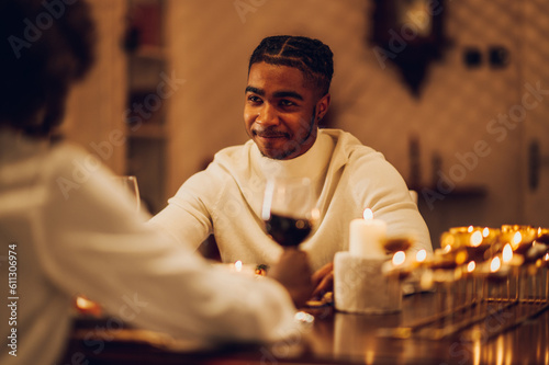 Smiling african american man having a romantic date with his girlfriend at home