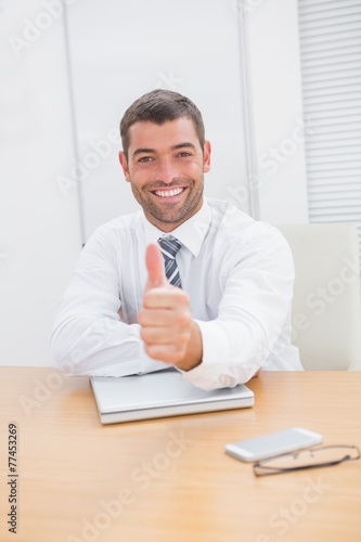 Smiling businessman showing thumbs up