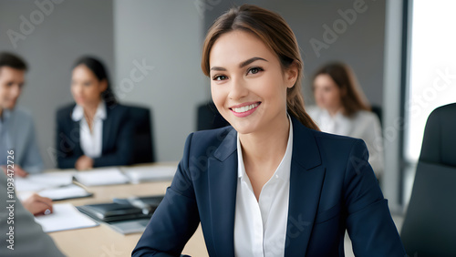 businesswoman, meeting, office, business, corporate, smile, woman, executive, professional, leadership, team, conference, table, boardroom, teamwork, career, success, management, female, entrepreneur, confident, suit, blazer, portrait, happy, positive, motivated, ambitious, work, workplace, job, company, discussion, strategy, planning, finance, marketing, sale, communication, collaboration, presentation, project, achievement, goal, vision, growth, development, partnership