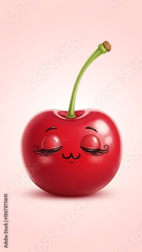 Smiling cherry with closed eyes cartoon.