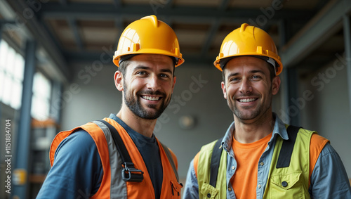 construction, partner, smiling, teamwork, builder, male, collaboration, industry, professionalism, labor, cheerful, camaraderie, project, renovation, construction site, men at work, construction industry, friendship, supportive, masculine, job, dependability, strong, confidence, motivation, building, craftsmanship, expertise, dedication, safety-gear