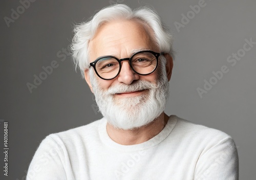 Smiling elderly man portrait studio professional photography neutral background close-up warm personality