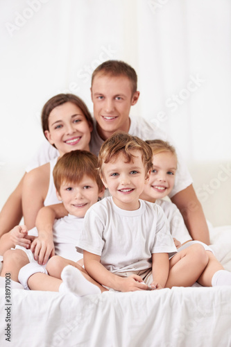 20s, 30s, bed, bedchamber, boy, caucasian, children, children, father, daughter, day, embracing, family, father, female, fun, girl, happiness, home, indoor, children, laughing, lifestyle, looking, love, male, man, morning, mother, eltern, people, playful, playing, portrait, pajama, reclining, relaxing, smiling, son, sunlight, white, window, woman, young