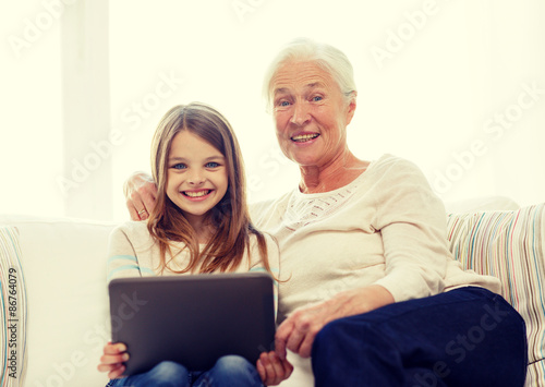 home, smiling, family, tablet, generation, grandmother, granddaughter, woman, grandchild, senior, people, person, lifestyle, living, room, leisure, young, children, children, childhood, elderly, together, happiness, little, girl, indoor, sofa, grandparent, love, human relationships, cheerful, mature, couch, friendship, contraption, computer, technology, social, networking, connection, cyberspace, online, communication, browsing, app, application