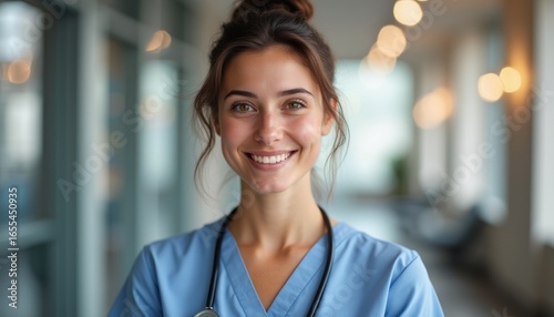 nurse, female, smiling, health care, scrub, hospital, professional, young, confidence, warmth, compassion, dedication, bright, corridor, medicals, caring, friendly, health, support, service, joy, optimism, well-being, teamwork, smiling face, medical professional, uplifting, positive, atmosphere, approachable