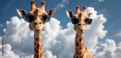 safari, giraffe, humor, majestic, comedy, joyful, sunshine, carefree, fluffy, vibrant, africa, wildlife, graphic, image, funny, photo, adorable, spotted, whimsical, happy, sunglasses, illustration, savanna, light, cartoon, wild, cloud, white, art, sun, cute, cloud, cheerful, sky, animal, design, bright, nature, summer, long neck