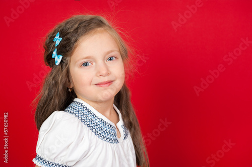 smiling girl portrait on red
