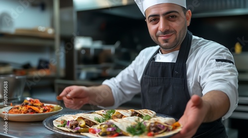chef, middle eastern, cooking, kitchen, culinary, wrap, health food, smiling, eatery, gastronomy, dining, cookery, culinary arts, ethnic food, food photography, cheerful, delicious, appetising, meal, epicure