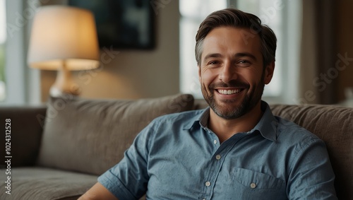 Smiling man sitting at home