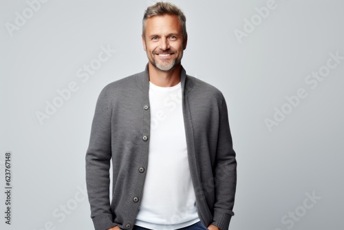 guy, model, portrait, smiling, photogenic, grey, male, person, man, looking, standing, white, cheerful, confident, 1, happy, people, adult, background, studio