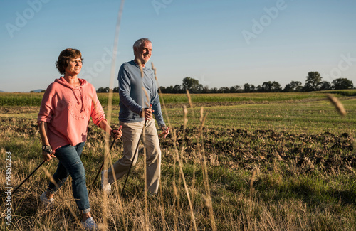 smiling, senior, couple, walking, hiking, pole, near, field, copy space, people, sport, travel, adult, woman, man, journey, outdoors, bonding, leisure, active, senior, sunlight, light, sky, nature, healthy, lifestyle, health, agricultural, agriculture, german, nordic, human relationships, holiday maker, tour tourism, togetherness, caucasian, vacation, lifestyle, calmness, meadow, female, male
