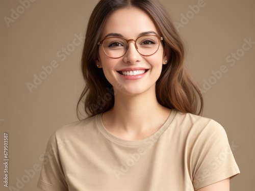 Smiling Woman in Glasses suitable for Facial, Dental, and Hair Care Advertorial