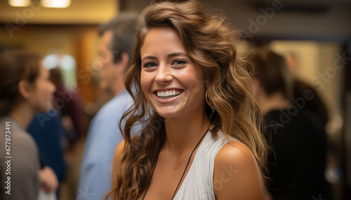 smiling, happiness, woman, adult, cheerful, lifestyle, missy, indoor, casual clothes, friendship, portrait, toothy smile, man, real people, fun, selective focus, enjoyment, youth culture, togetherness, joy, confidence, brown hair, looking, standing, avocation, beauty, crowd, carefree, student, adults only, front view, long hair, candid, laughing, relaxation, head shot, human face