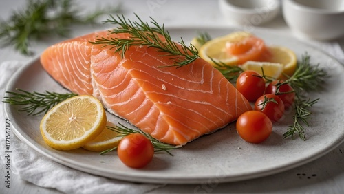 salmon, food, fish, salad, fresh, seafood, meal, lemon, healthy, fillet, raw, plate, dinner, epicure, red, smoked, green, vegetable, dish, slice, isolated, diet, steak, snack