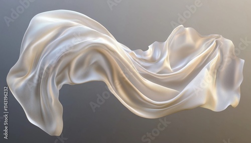 Smooth And Elegant White Cloth Floating Gracefully Against A Gray Background. Serene And Transparent Fabric Creates A Mesmerizing Illusion Of Flight.