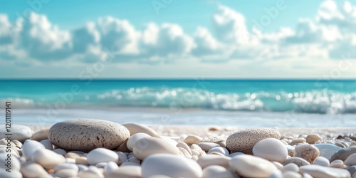 pebble, beach, ocean, turquoise, sand, sunlight, white, smooth, fluffy, cloud, scattered, background, bright, nature, tropical, landscape, summer, shore, relaxation, tranquil, water, coastal, environment, scenery, beauty, wave, marin, horizon, paradise, scenic, calm, serenity, sunshine, vacation, resort, coastline, holiday, travel, aesthetic, natural, crystal, clarity, atmosphere, texture, organic