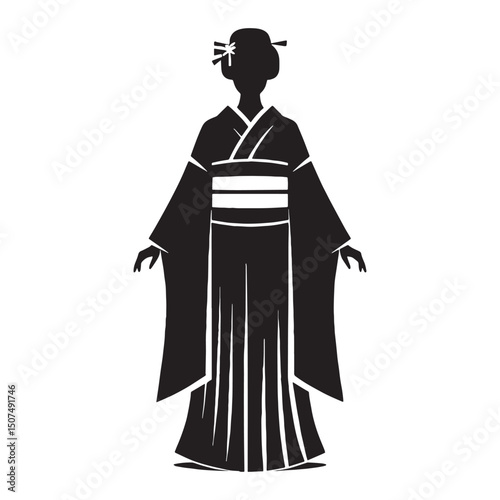 Smooth yukata design in modern silhouette – yukata silhouette – yukata vector – yukata illustration – japanese dress silhouette – ladies dress silhouette – silhouette of yukata
