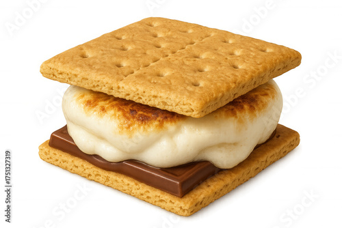 S'more dessert with melted toasted marshmallow and chocolate between graham crackers, transparent background