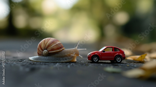 Snail and a small toy car