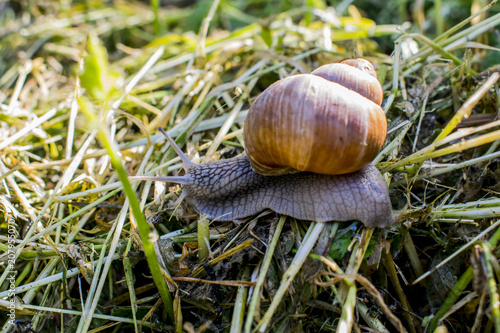 snail in the garden on the grass