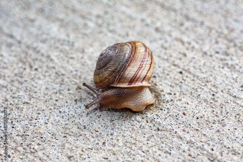 snail on textured sidewalk