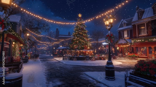 snow, village, square, night, festivity, christmas, light, tree, decoration, winter, celebration, lantern, atmosphere, season, joy, peace, cosy, charming, scene, holiday, snowflake, street, bench, charme, evening, bright, colourful, happy, travel, festive, gathering, people, market, warm, tradition, event, landscape, serene, picturesque, beauty, magic, joyfulness, show, romantic, peaceful, harmony, nature, scenery