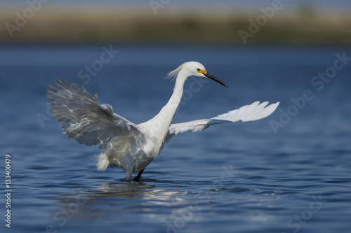 snowy egret, bird, wildlife, white, wing, blue, active, animal, bright, feeding, fishing, hunting, low angle, nature, shallow, sunny, wading, water, at water level, yellow