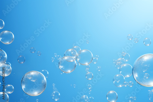 Soap bubbles on a blue background, copy space.