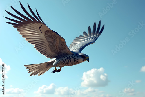 Soaring High, A Majestic Bird of Prey in Flight Against a Bright Blue Sky with Soft Clouds, Capturing the Essence of Wildlife and Freedom in Nature