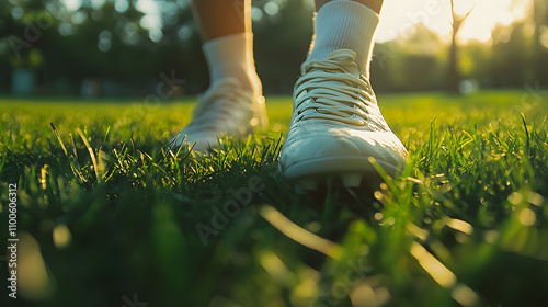Soccer Player Closeup Action, Football Field Morning Light, Sports Photography, Perfect for Soccer Enthusiasts, Vibrant Colors