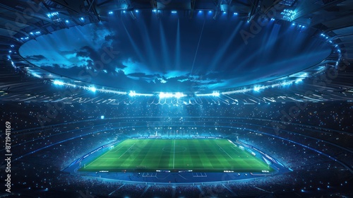soccer stadium top view and sky dark blue