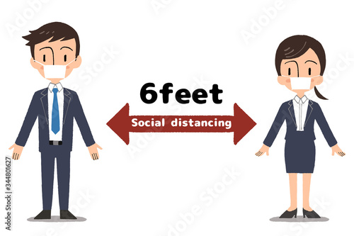 ソーシャルディスタンス、social distancing、男女のイラスト