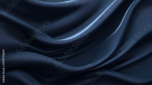 Soft dark blue fabric drapes and flows gracefully, showcasing smooth waves and gentle creases. The subtle sheen reflects light, adding depth to the texture.