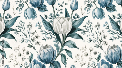 soft muted tulip pattern with ivory background and hand drawn green leaves vintage floral layout for wrapping cards or spring paper goods floral botanical illustration design wallpaper background